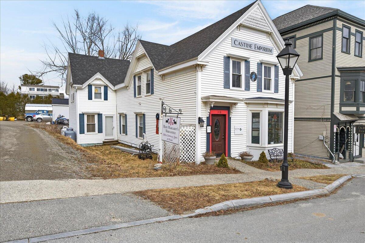 Classic multi-use residence in the center of historic Castine. Steps from the town dock, restaurants, and inns. A short walk to the town common, post office, and MMA. Commercially zoned, allowing for combined residential, and commercial use. Live upstairs, and use the lower floor for your gallery, business, or office. You may also choose to use it solely as a residence. The main unit has three bedrooms, and two full baths. The front unit 1st floor bath, and kitchen were renovated in 2018. The roof was replaced in 2024. The 1-bedroom back apartment can be used as a rental unit, guest space, or combined with the rest of the structure. Detached garage in the rear of the lot. Vinyl siding, and many updates. A property with many possibilities.