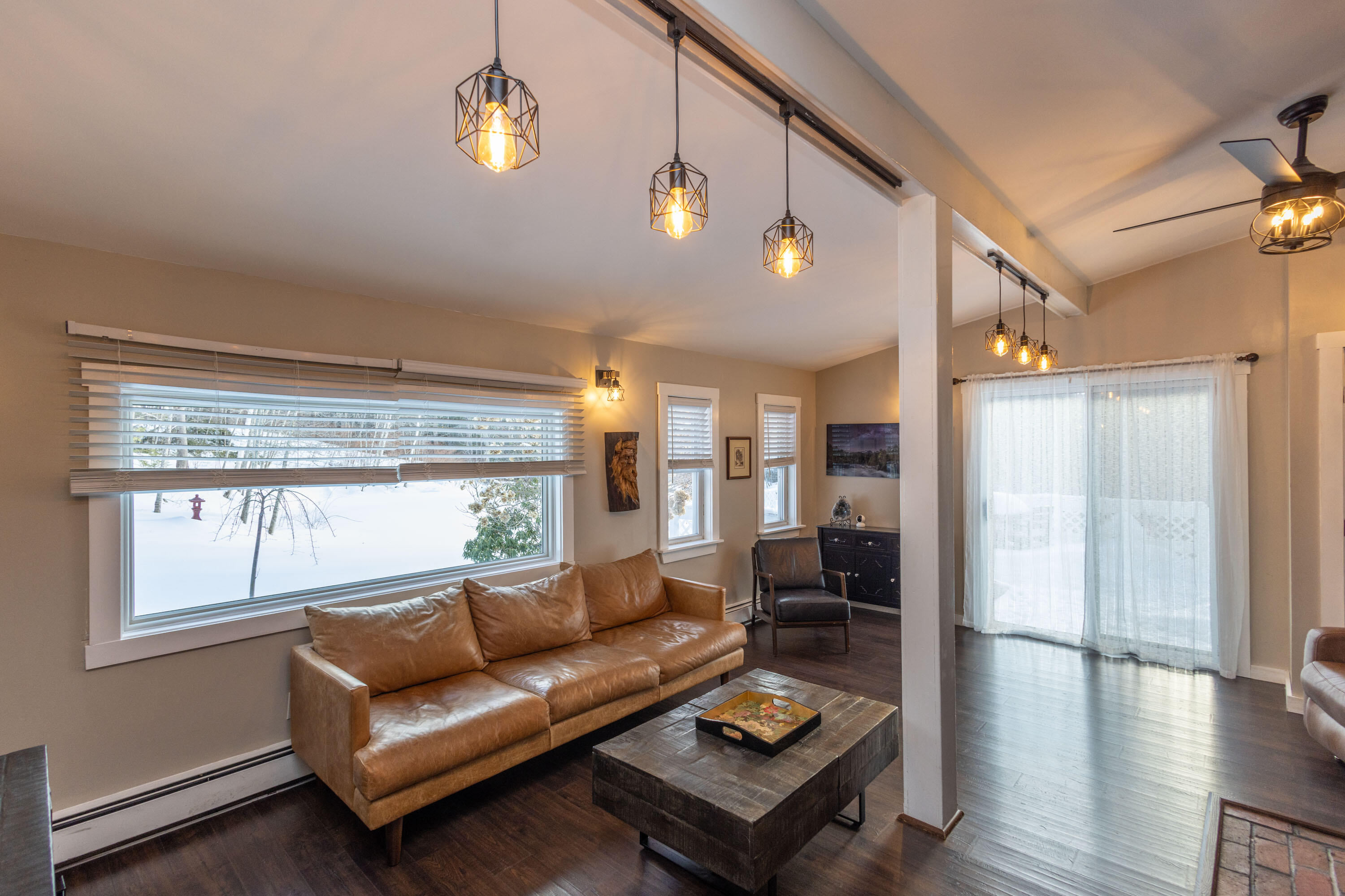 Welcome to this inviting 3-bedroom, 2-bath contemporary home in Warren, where modern comfort meets the natural beauty of Midcoast Maine. Ideally located with easy access to Rockland, Thomaston, and nearby coastal amenities, the property offers a balance of convenience and outdoor living. Set on over 2 private, wooded acres, the home features a peaceful backyard with a scenic farm pond that attracts local wildlife, including deer, birds, and the occasional heron. Mature trees provide shade and privacy, while newer plantings add seasonal color. Inside, the open-concept layout creates a comfortable and connected living space. The kitchen flows seamlessly into the living area, centered around a cozy wood-burning stove. Direct access to the back deck extends the living space outdoors. The first floor includes two bedrooms and a full bath, while the second level offers an additional bedroom and bath, ideal for guests or a home office. A dedicated laundry/mudroom adds everyday functionality. Outside, the back deck overlooks the yard and pond, creating a perfect space for relaxing or entertaining. A detached two-car garage with loft storage provides ample space for vehicles and equipment. With its private setting, flexible layout, and proximity to the coast, this property offers a wonderful opportunity to enjoy Maine living.