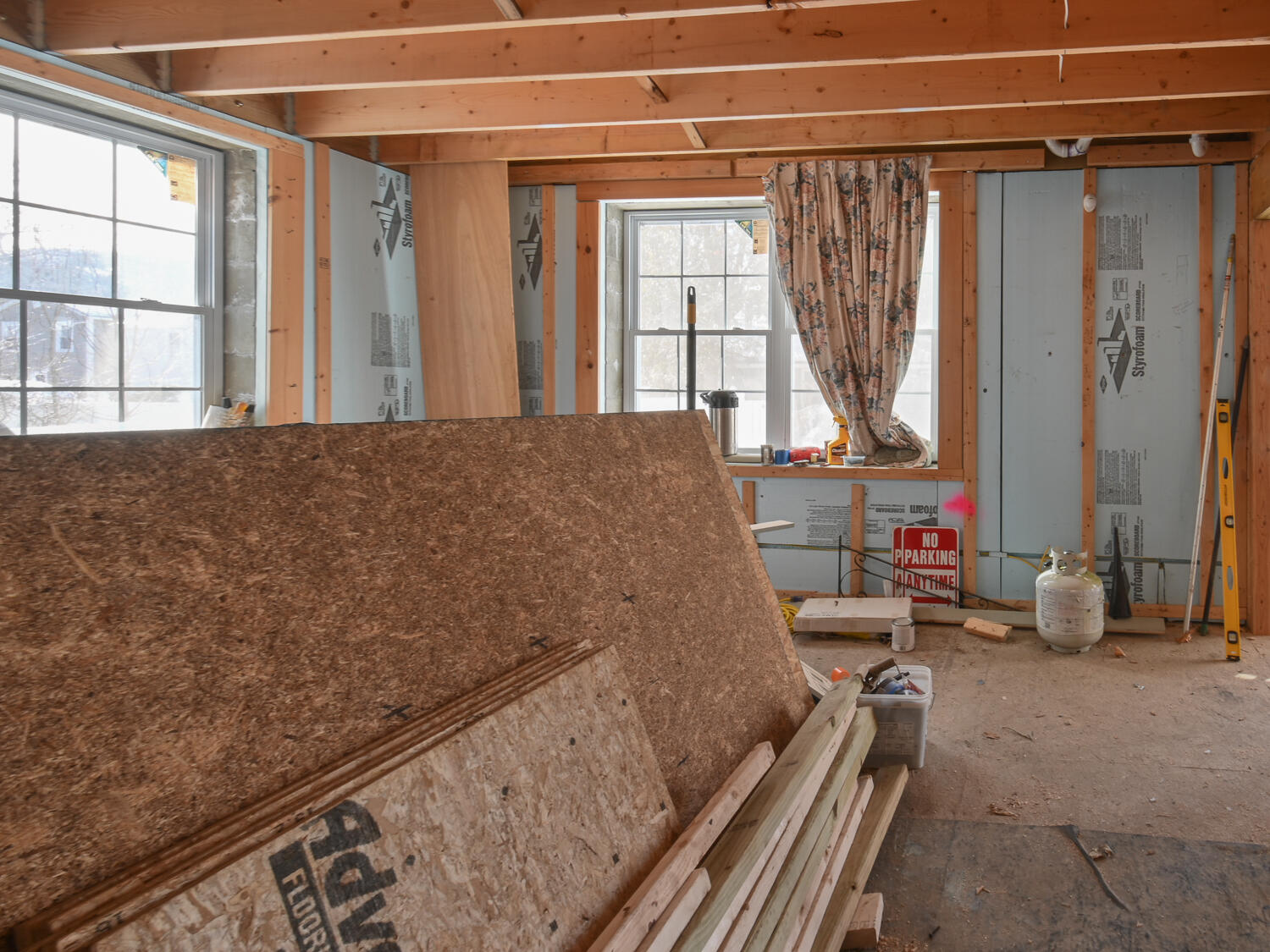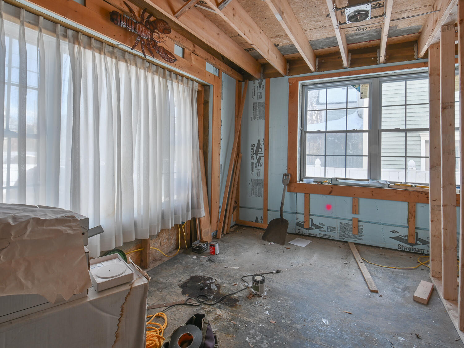Opportunity to finish this in-town residential property with 932+/- square feet in the original home and an additional 2400+/- of shelled in, watertight addition with separate entry. Many possibilities to consider.